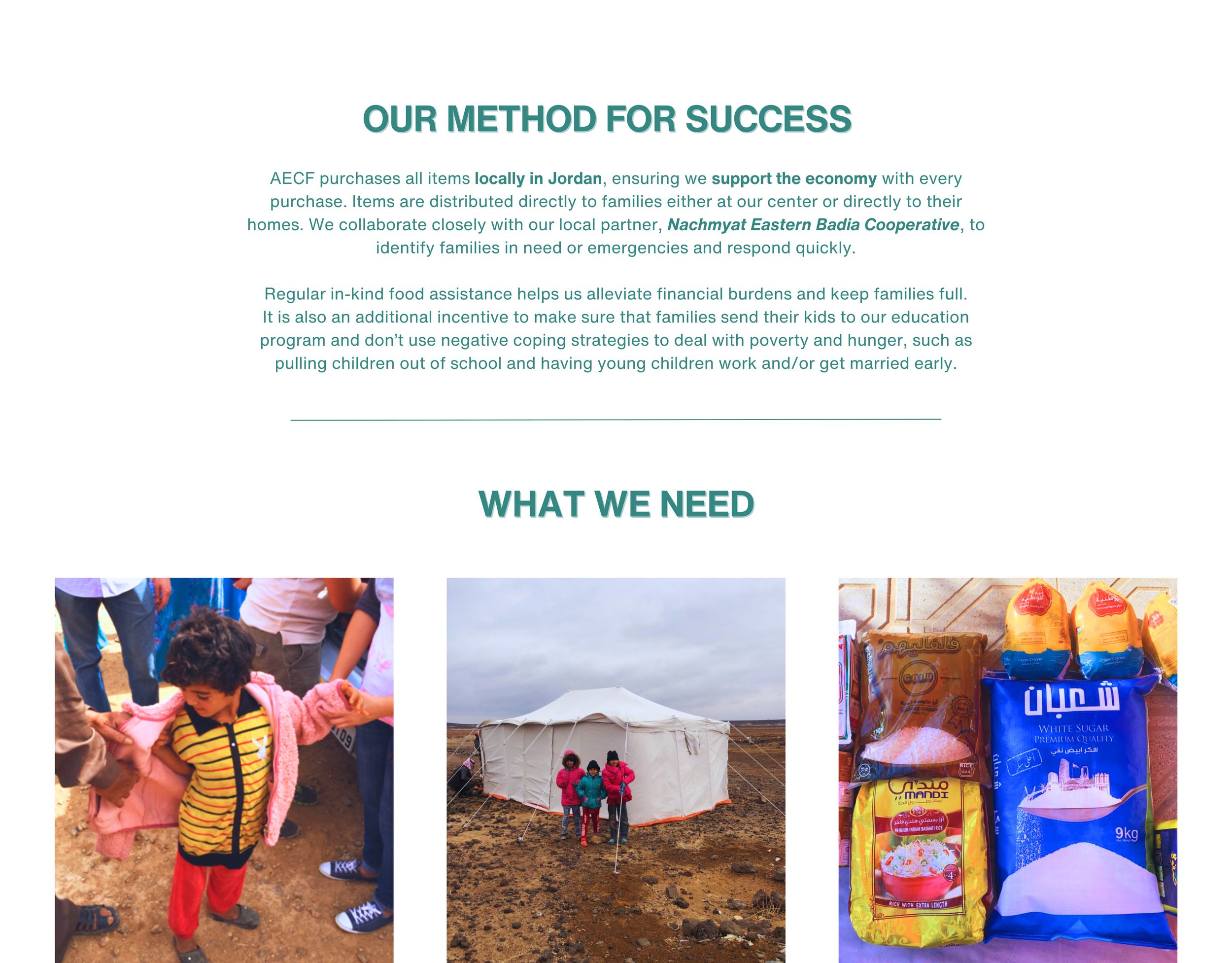 Improve hygiene conditions with diapers for children and the elderly, women's menstrual items, and soap. Respond to urgent medical needs.
